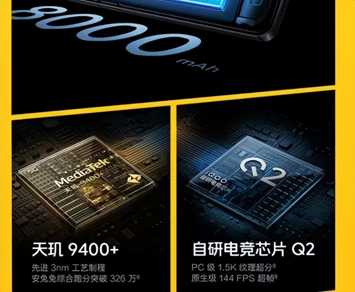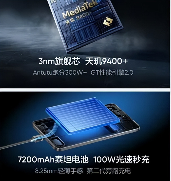 这款机器的纸面参数是非常高的,已经接近次旗舰的定位,同样搭载天玑 9400+ 芯片。