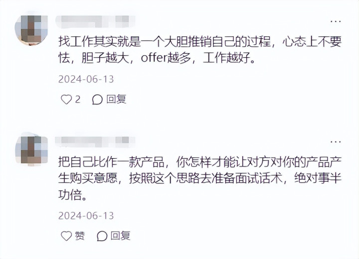 就拿面试来说,运用这种销售思维去应对时,“解题思路”就已经很不一样了。典型的比如面试时一定会遇到自我介绍的这个环节,懂得运用这个思维的职场人就会朝着“我很适合贵公司”的方向去介绍自己,而不是干巴巴的再复述一遍简历上的内容。